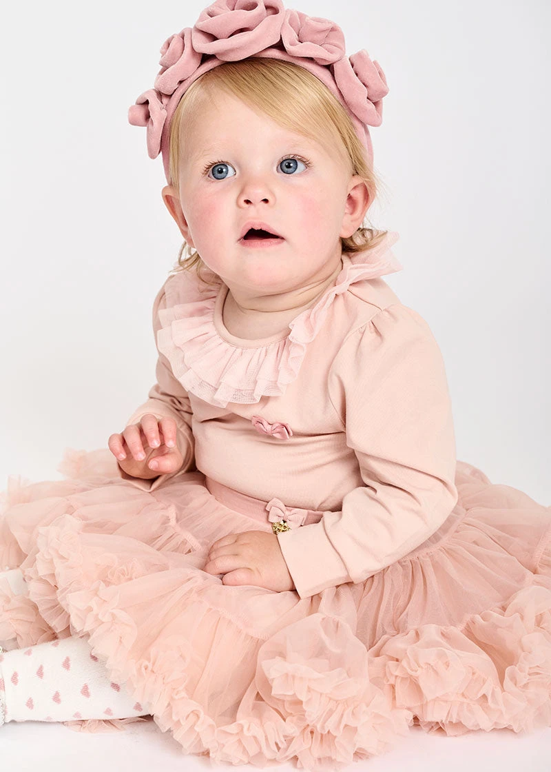 This tutu is not packaged in our Striped Hat Box. Our iconic Angel’s Face tutu isn’t just for big girls! Our oh-so-dinky baby size tutu features layer upon layer of delicate ruffled tulle, gathered into a soft stretch waistband, Fully lined in a soft cotton. This beautiful tutu is complete with our signature Angel’s Face bow and gold heart charm on the waistband.