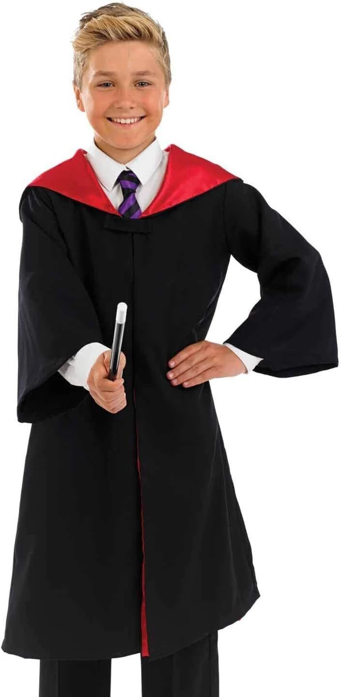 Il costume include: una toga nera con cappuccio foderato rosso ed una bacchetta magica nera.Questo costume per bambini è disponibile in taglia: S, M, L, XL. Usare l’immagine di riferimento per la misura delle taglie. Materiali di alta qualità, facile da indossare e resistente.Sicuro per i bambini: rispetta gli Standard di Sicurezza EU e UK ed ha il marchio di sicurezza CE.