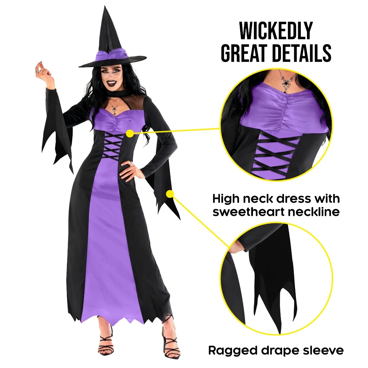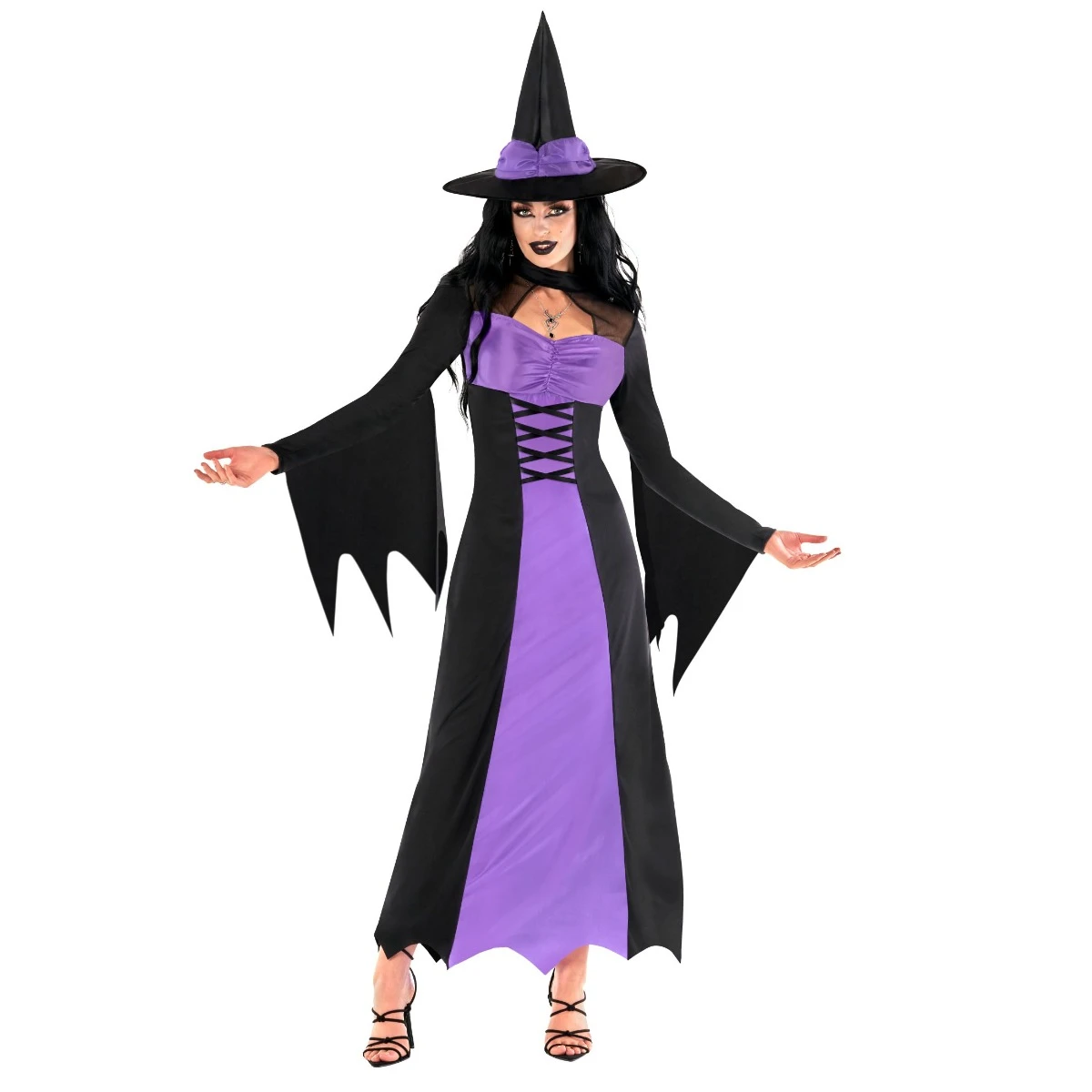 Preparati per Halloween con il nostro Costume da Strega Viola per donne! Questo spaventoso abito include un lungo vestito e un classico cappello da strega, perfetto per abbracciare la magia e il mistero. Risalta in ogni raduno di Halloween con questo incantevole costume viola da strega. Libera la tua strega interiore e crea ricordi indimenticabili con questo deliziosamente inquietante costume!