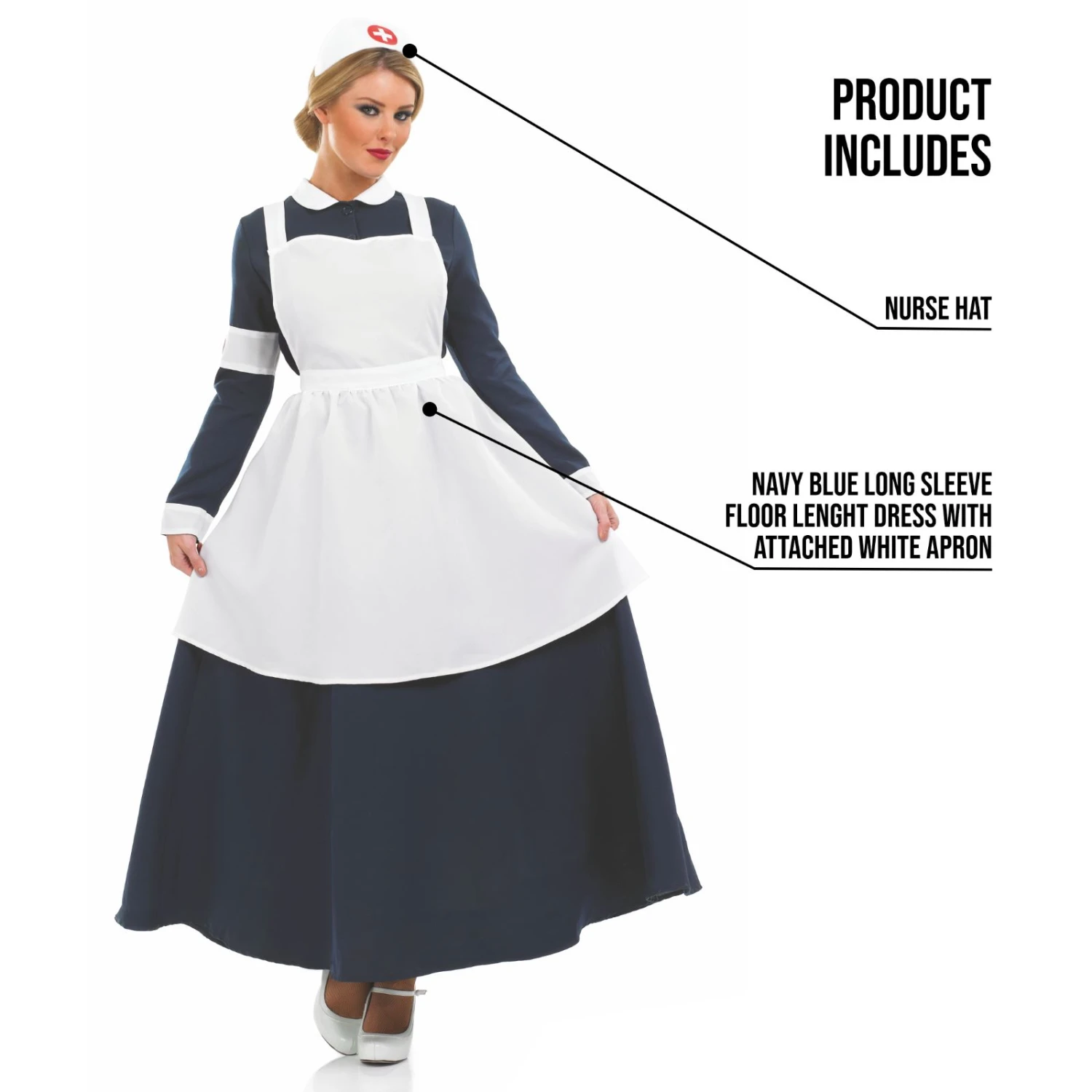 Include: un abito nero lungo fino al pavimento a maniche lunghe con grembiule attaccato bianco e cappello da infermiera caratteristico.Questo costume per adulti è disponibile in taglia: S, M, L, XL, XXL. Usare l’immagine di riferimento per la misura delle taglie. Materiali di alta qualità, facile da indossare e resistente.La nostra Azienda è stata fondata nel 2009 da 3 amici appassionati di costumi. Abbiamo uffici in USA, UK ed Europa con centinaia di design che rispettano il massimo degli standard di qualità.