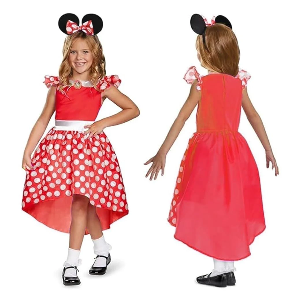 Probabilmente il topo più famoso di tutti, delizia il tuo piccolo con questo costume ufficiale Disney di Minnie rosso. Include vestito e fascia.Abito di alta qualità con gonna a pois con taglio a campana, spalle a balze e a sbuffo e spilla con ritratto di Minnie. Include anche una fascia con le orecchie e il fiocco caratteristici di Minnie.Disponibile nella taglia S (5-6); Usare l’immagine di riferimento per la misura delle taglie.Il nostro design è sicuro per i bambini, rispetta gli Standard di Sicurezza EU e UK ed ha il marchio di sicurezza CE.