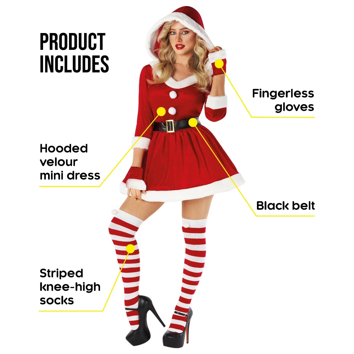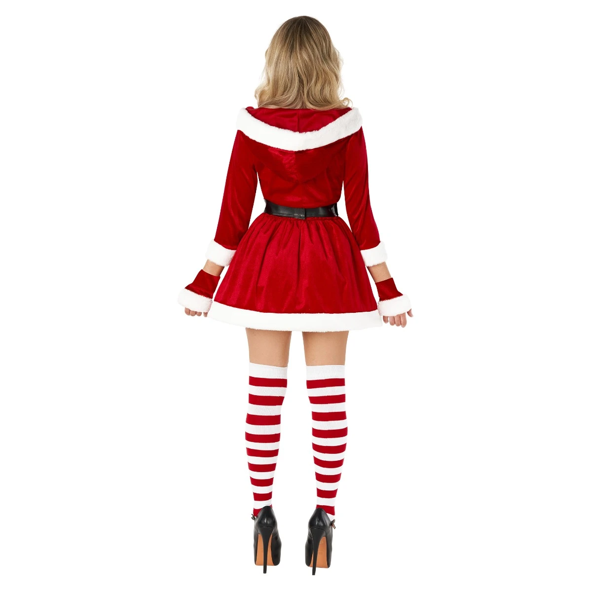 L’abito sexy della signora Claus per le donne è un set seducente che include un mini abito di velluto rosso con cofano e ornamenti artificiali. Enfatizza la tua vita con la cintura nera inclusa per una silhouette impressionante. Completa il look con calze a strisce che aggiungono un tocco giocoso al loro fascino festivo. Indipendentemente dal fatto che il calore si diffonda o rende il cuore di Babbo Natale più veloce, questo costume è la scelta perfetta. Ordene Il costume sexy della signora Claus ora!
