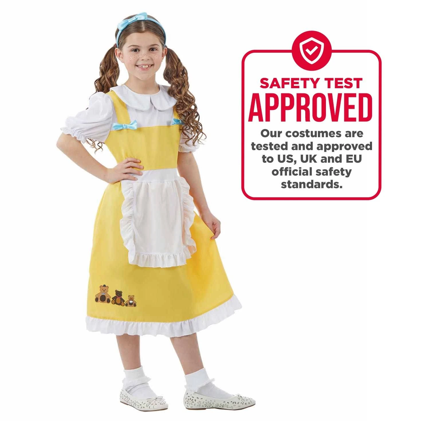Include: un vestito giallo sgargiante con grembiule e una fascia con fiocchetto blu.Questo costume per bambini è disponibile in taglia: S, M, L. Usare l’immagine di riferimento per la misura delle taglie. Materiali di alta qualità, facile da indossare e resistente.Sicuro per i bambini: rispetta gli Standard di Sicurezza EU e UK ed ha il marchio di sicurezza CE.