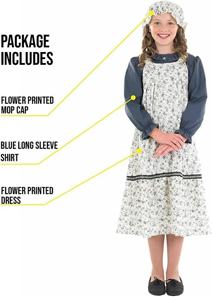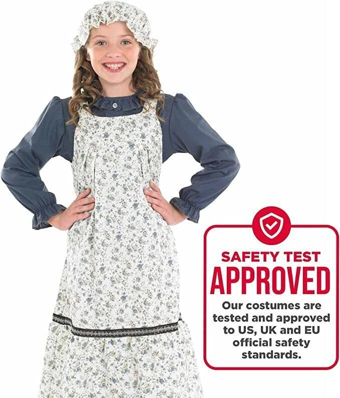 Include: un vestito bianco con fiori stampati in blu, un cappuccio in tinta unita e una camicia a maniche lunghe blu.Questo costume per bambini è disponibile in taglia: M, L, XL. Usare l’immagine di riferimento per la misura delle taglie. Materiali di alta qualità, facile da indossare e resistente.Sicuro per i bambini: rispetta gli Standard di Sicurezza EU e UK ed ha il marchio di sicurezza CE.