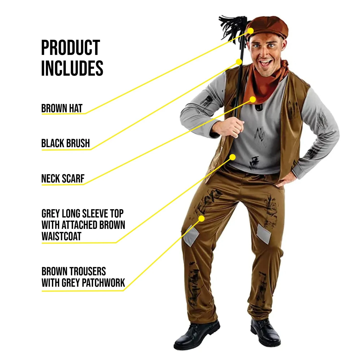 Include: un top grigio a maniche lunghe con gilet marrone incorporato, pantaloni marroni con patchwork grigio, cappello e sciarpa al collo marroni e una spazzola nera per completare il tutto.Questo costume per adulti è disponibile in taglia: M, L, XL. Usare l’immagine di riferimento per la misura delle taglie. Materiali di alta qualità, facile da indossare e resistente.La nostra Azienda è stata fondata nel 2009 da 3 amici appassionati di costumi. Abbiamo uffici in USA, UK ed Europa con centinaia di design che rispettano il massimo degli standard di qualità.