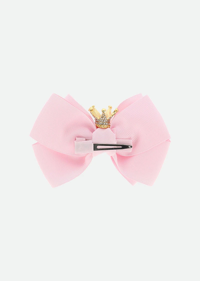 Our fabulous sparkle crown bow hairclip is available in an array of colours, the perfect finishing touch to any outfit. The iconic bow features a sparkling gold crystal crown, fit for a princess