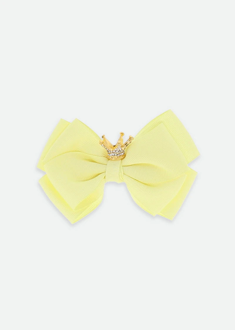 Our fabulous sparkle crown bow hair clip in a beautiful sherbet lemon, the perfect finishing touch to any outfit. The iconic bow features a sparkling gold crystal crown, fit for a princess.
