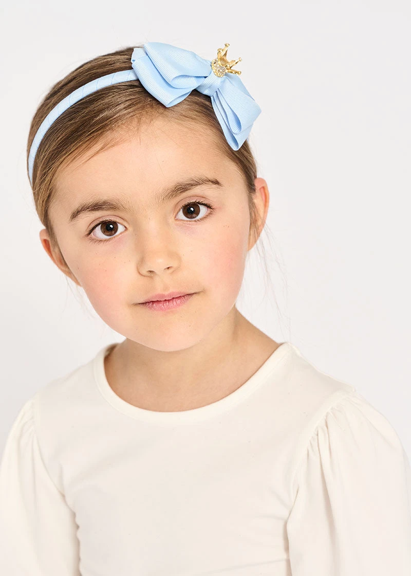 Our sparkle crown headband comes in an array of colours to compliment any outfit. The decorative headband features our signature Angels Face bow complete with a sparkling gold crystal crown, fit for any princess.