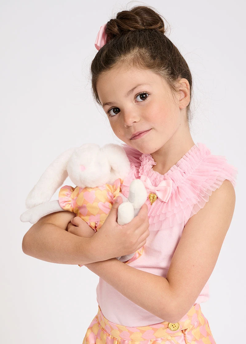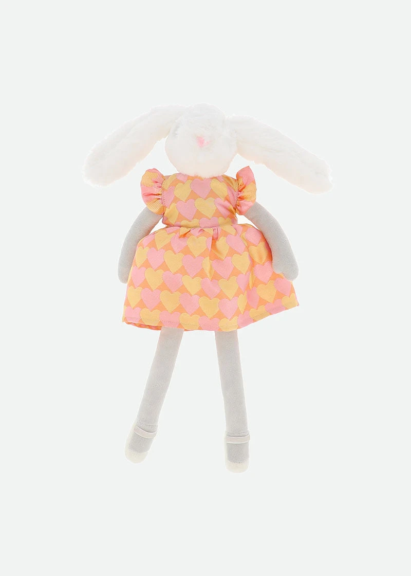 Luxuriously soft toy rabbit comes dressed to impress in this seasons apricot heart jacquard dress. Dress can be removed for any outfit change!
