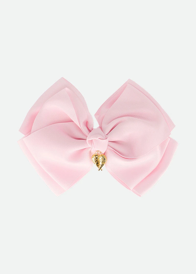 Complete the look with our giant decorative bow hairclip. This showstopper accessory will add an Angel’s Face touch to your girls outfits, available in an array of colours. The giant grosgrain bow is complete with our iconic gold heart charm on the center.
