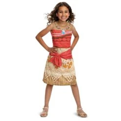 How far will your little one go in this Official Disney Moana costume, includes the dress. This dress made with printed details and shades of red on the top half and cream on the bottom half is perfect to turn any child into real life Moana.