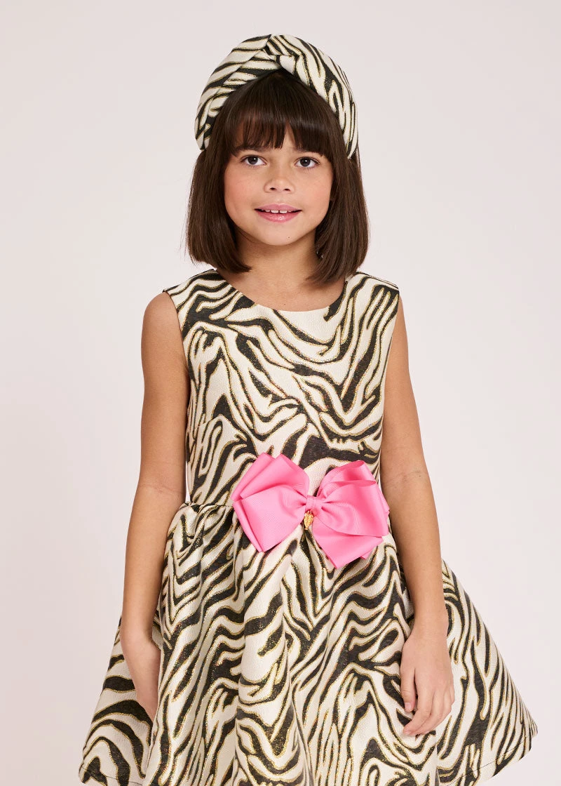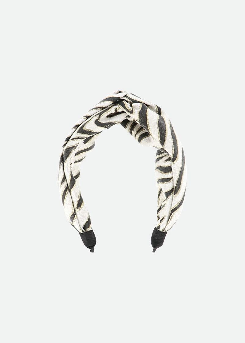 Girls classy black and white zebra headband. This jacquard headband features a twist style with knot in the centre. Perfect to dress up your outfit.