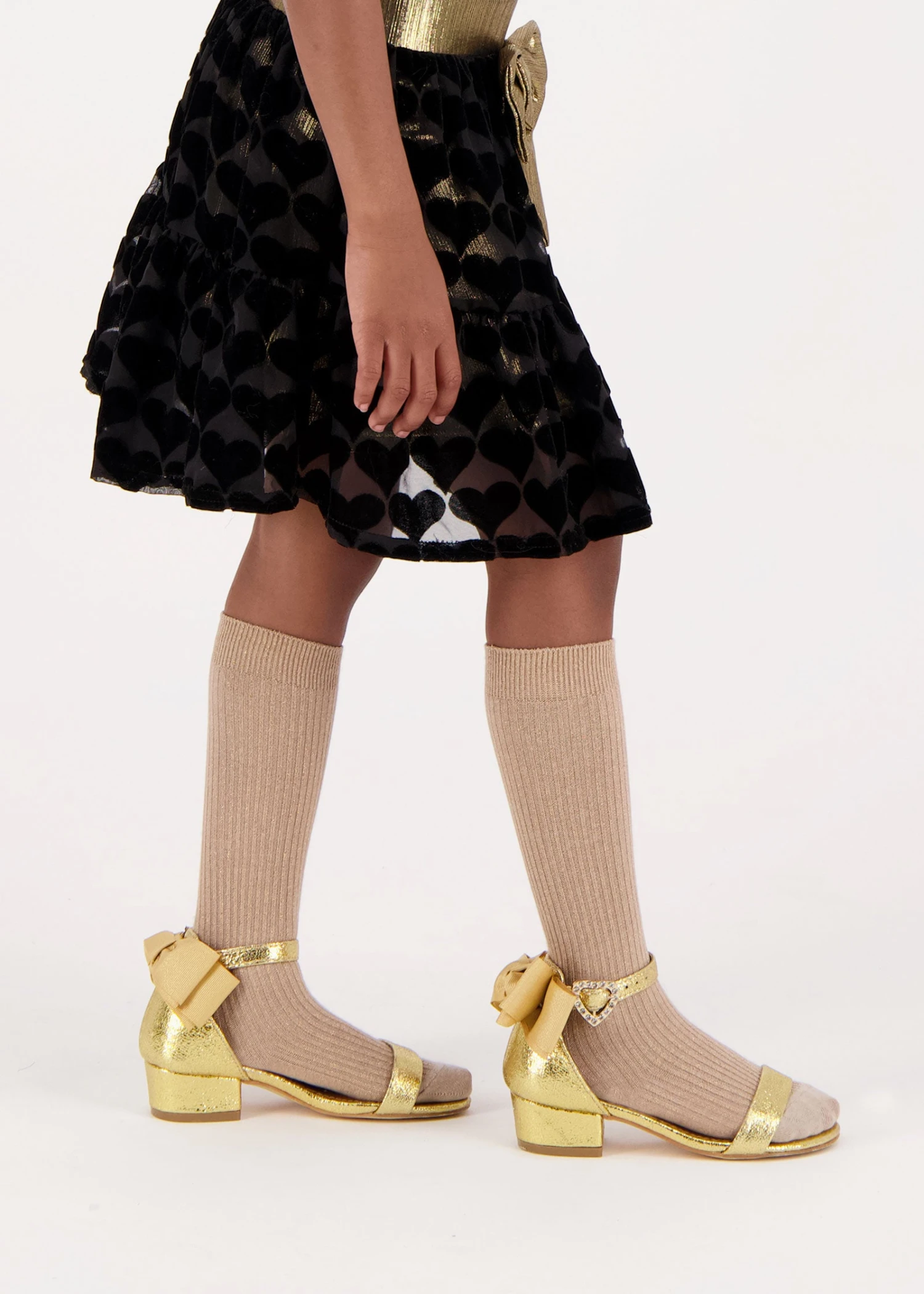 Cute Knee-High ribbed socks for girls. Pretty sparkly Sand colour.