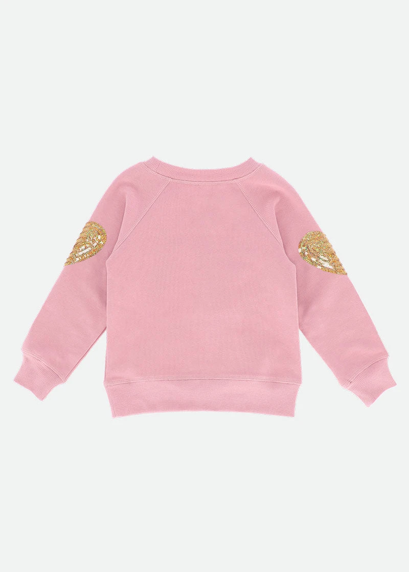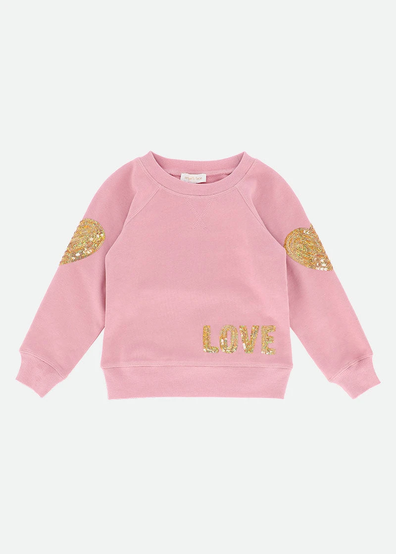 Add some love to your wardrobe with our Martha Love round neck sweatshirt. This stylish jumper will add some sparkle to your winter wardrobe! Designed with a comfortable relaxed fit with ribbed neck, cuffs and hem. Sequins glisten delightfully on the front bodice ‘love’ and heart arm decoration.