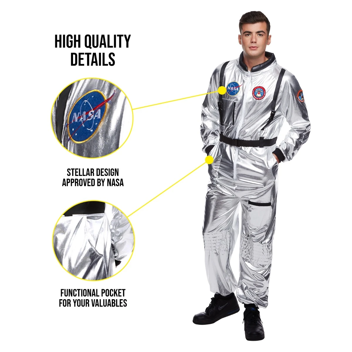 You can take one giant leap for mankind with the men’s silver astronaut costume uniform. This eye-catching uniform comes with a NASA badge and will definitely have you ready for lift off at your next fancy dress party.