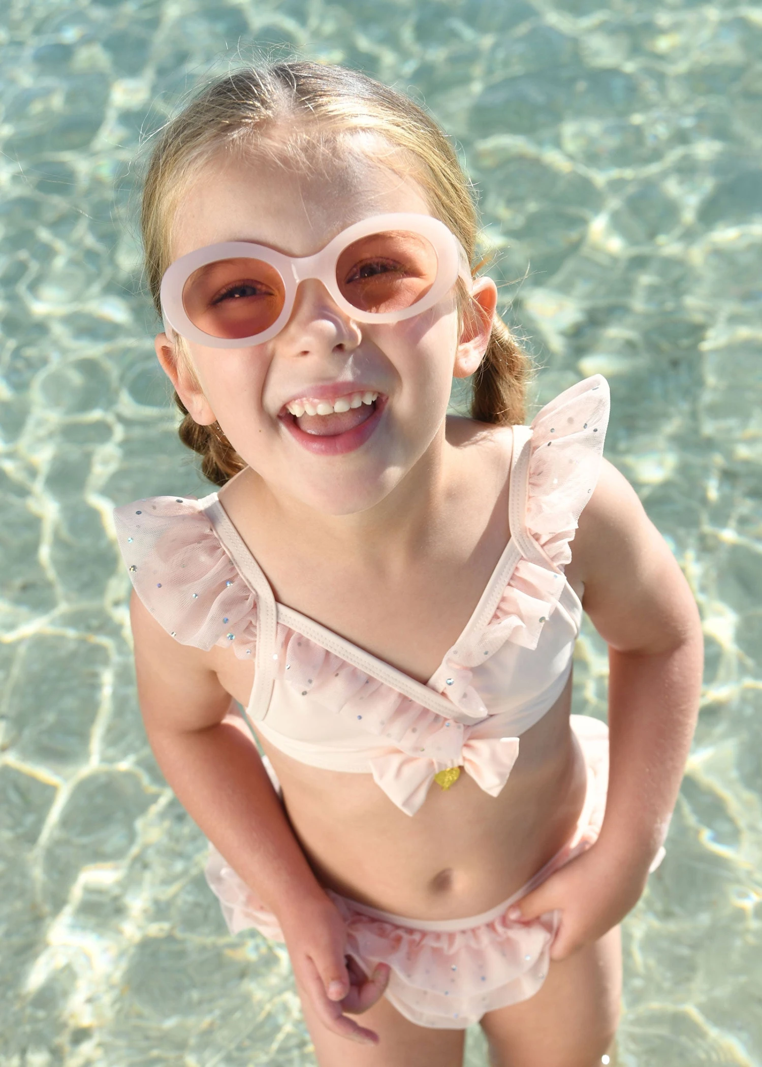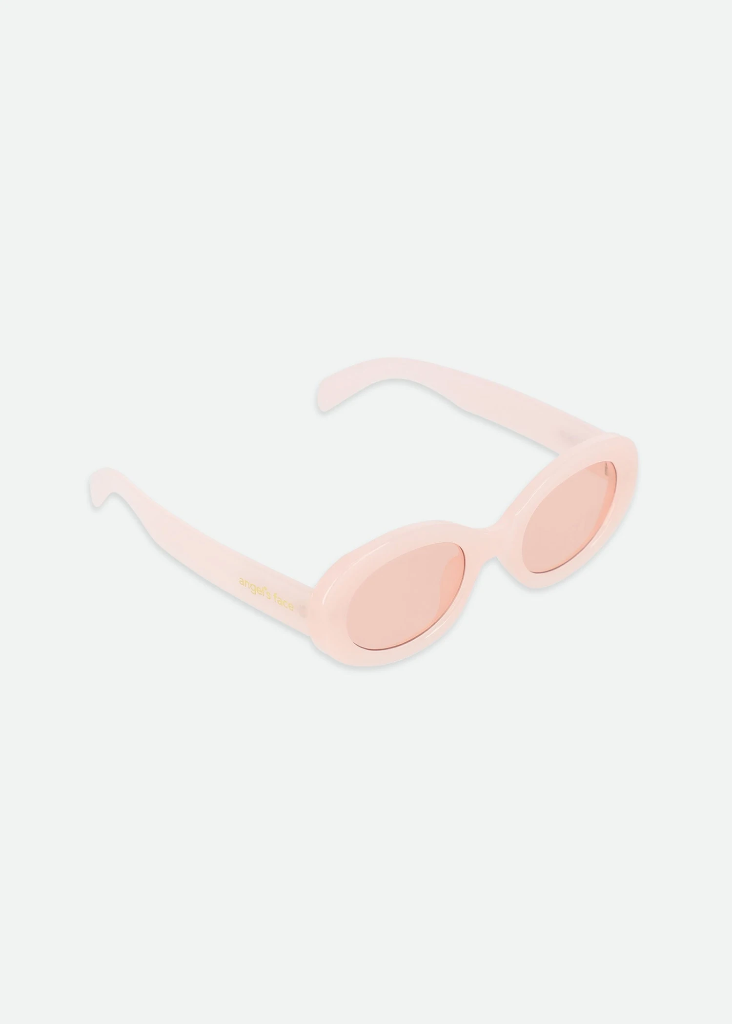 Stylish oval sunglasses for girls. Chunky acrylic frame with Angel’s Face logo on the side, each pair comes in a luxurious pink case. Sunglasses have full UV protection to protect delicate little eyes.