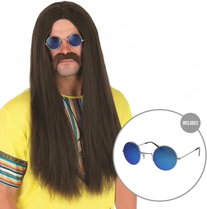 Parrucca Castana Lunga E Occhiali Da Hippie