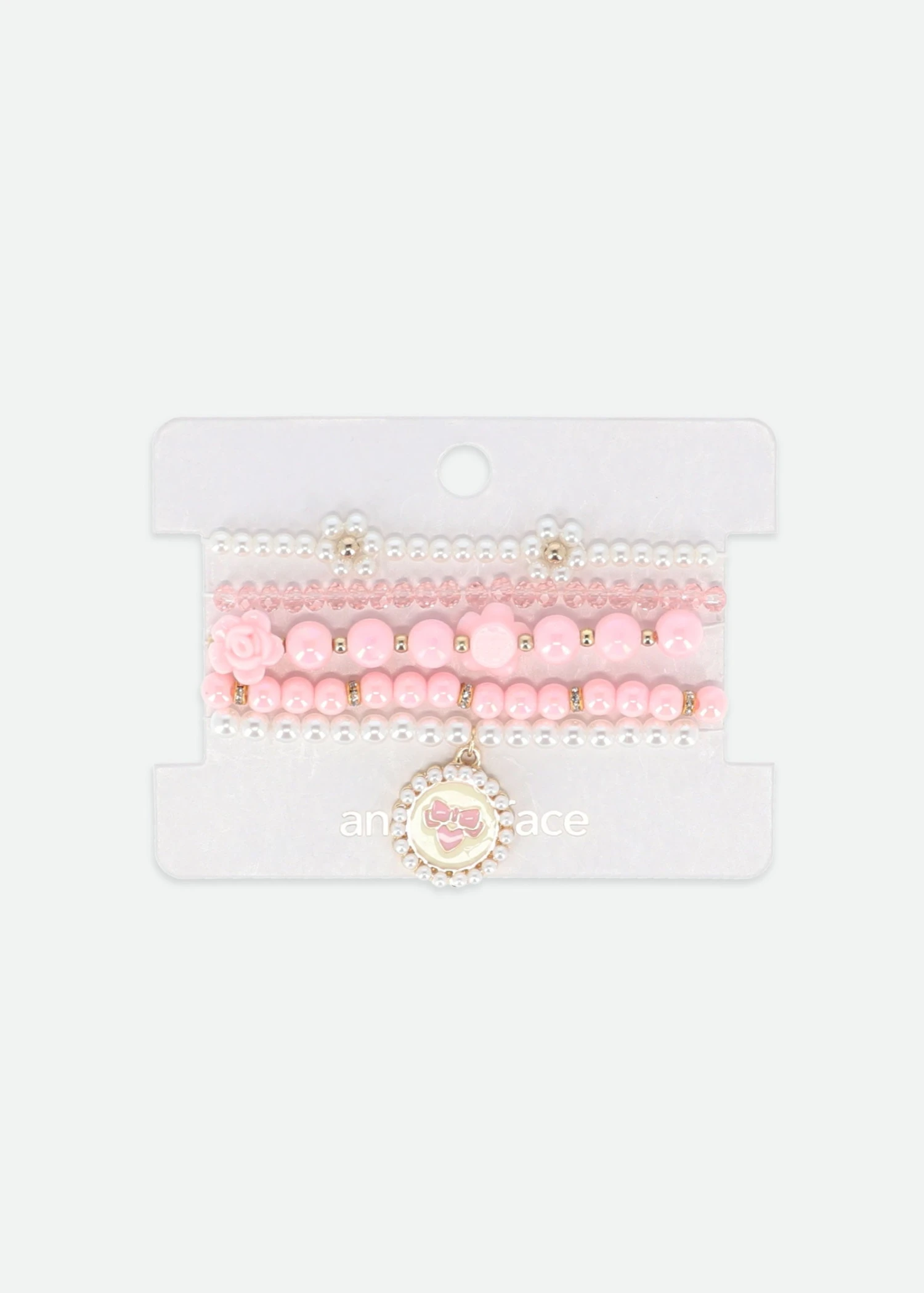 Five-pack bracelet set in pink and white matching this season’s collection. Wear together or individually to suit your style, all bracelets are elasticated for easy wearing.