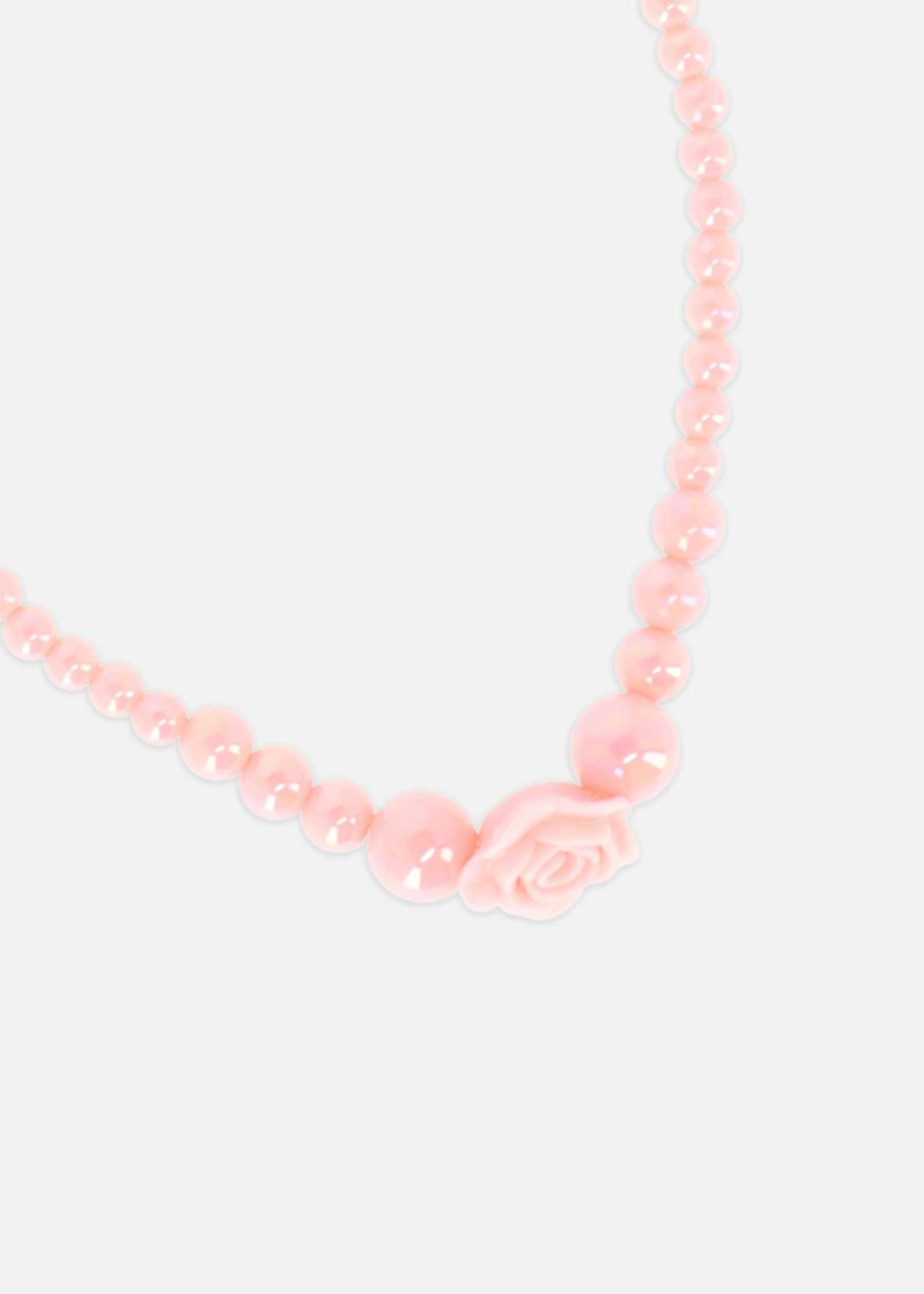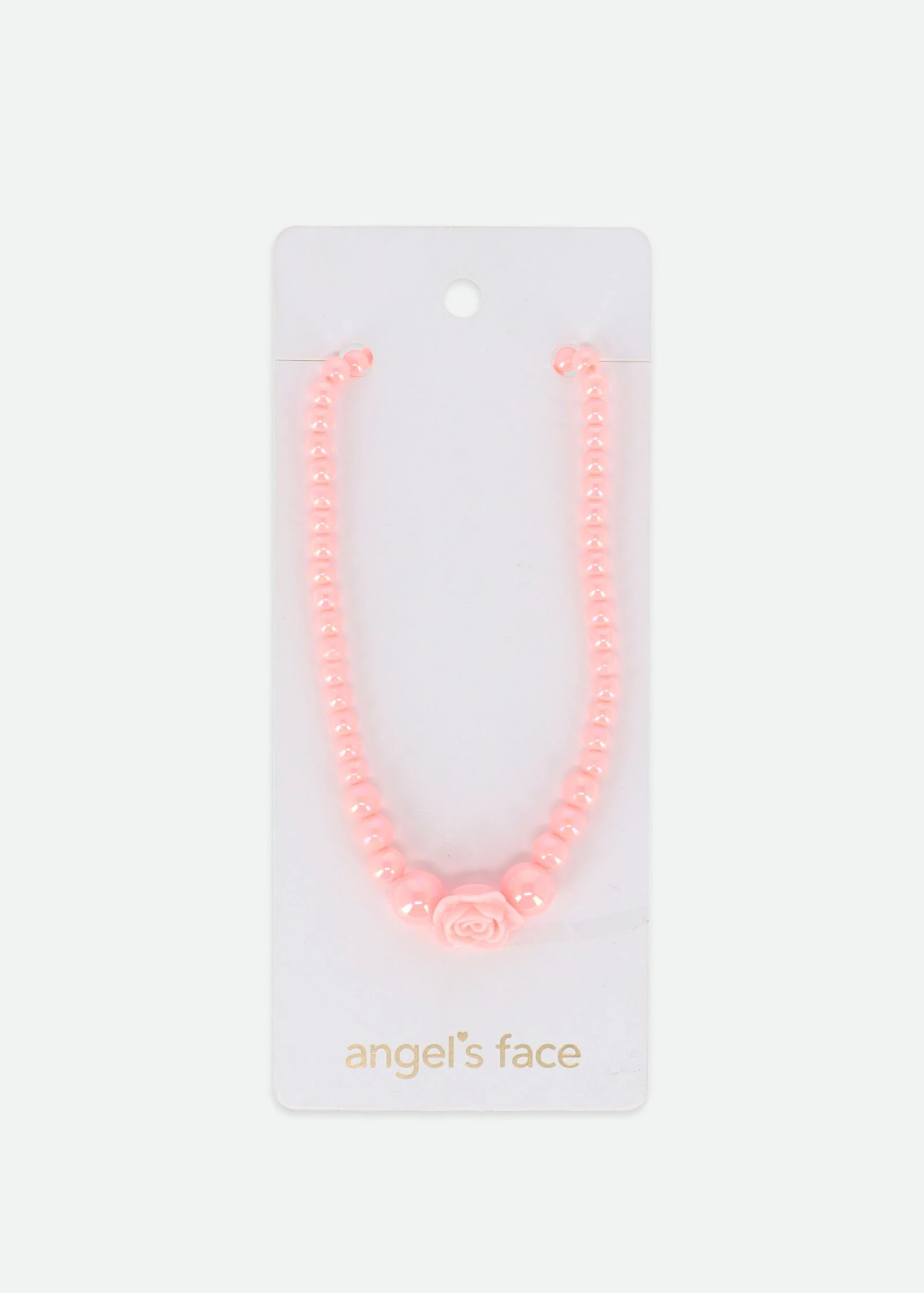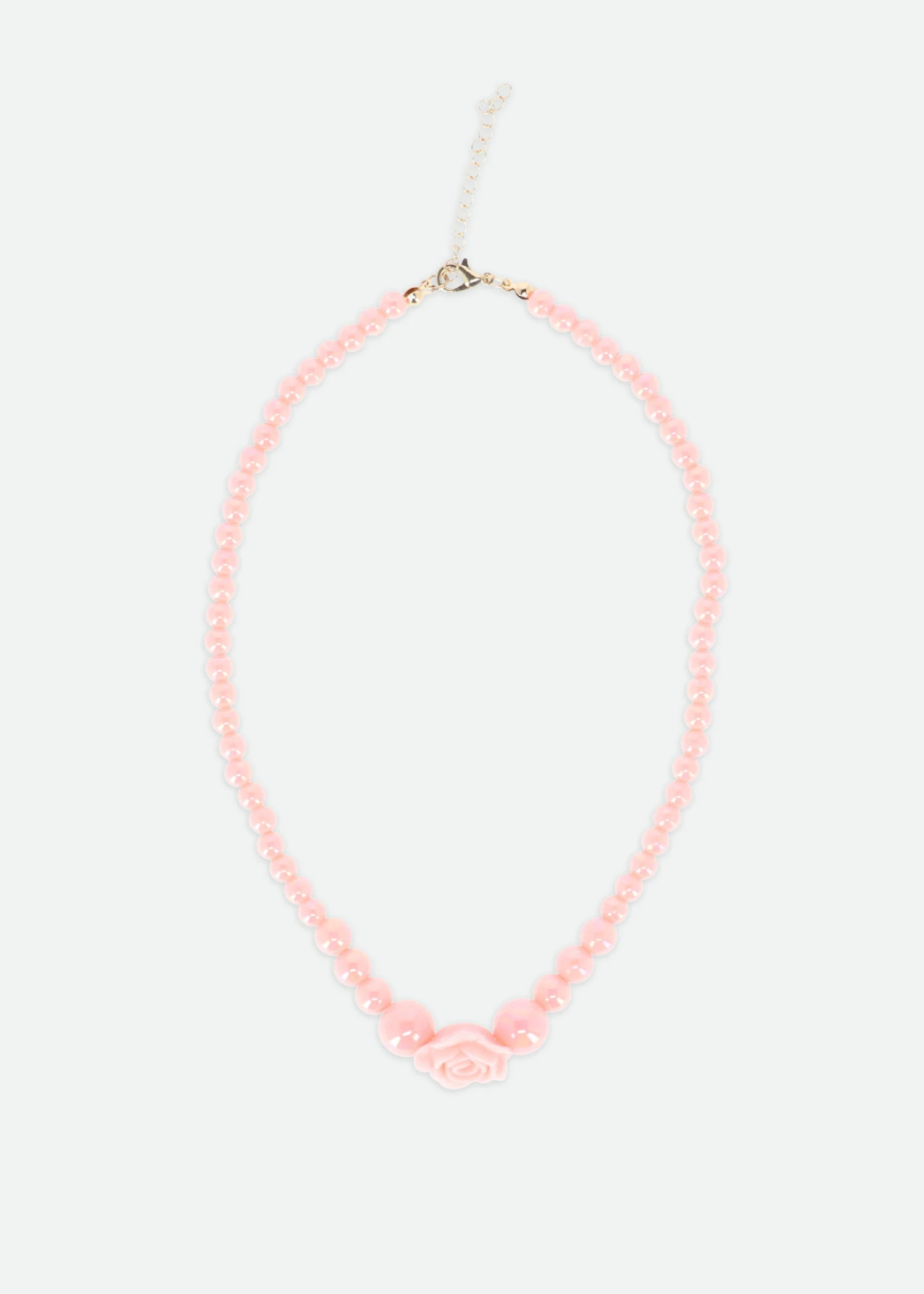 Girls peach beaded necklace with rose pendant. Fastens at the back with a simple lobster clasp, perfect for little fingers.