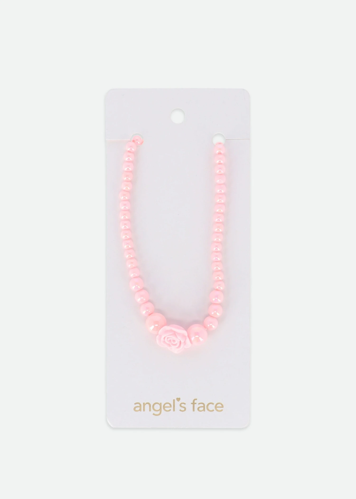 Girls pink beaded necklace with rose pendant. Fastens at the back with a simple lobster clasp, perfect for little fingers.