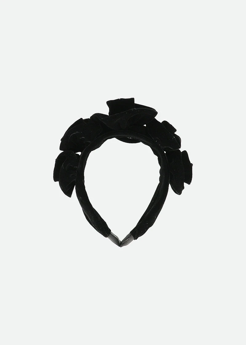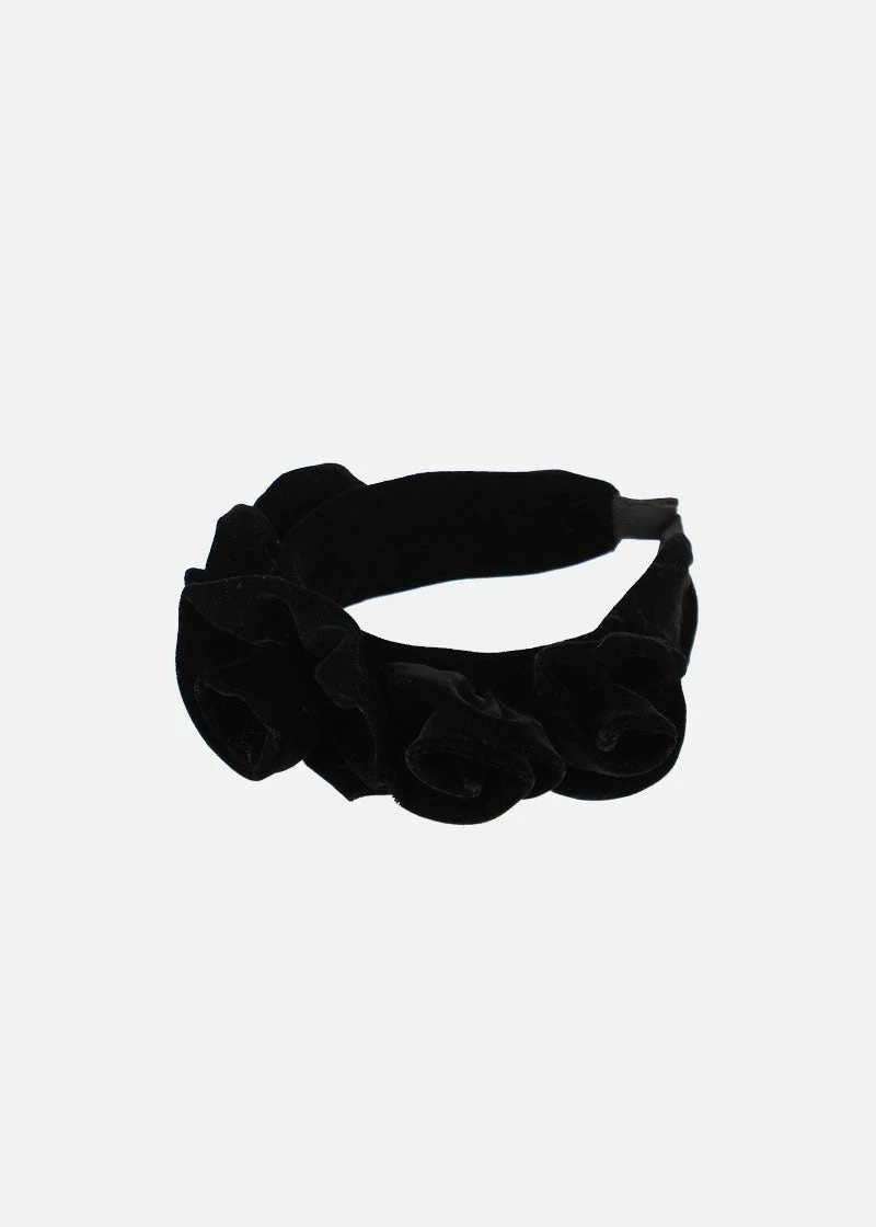 Add a luxury finish to any outfit with our velvet Rosie headband. Three black roses to frame the face of your stylish angel.