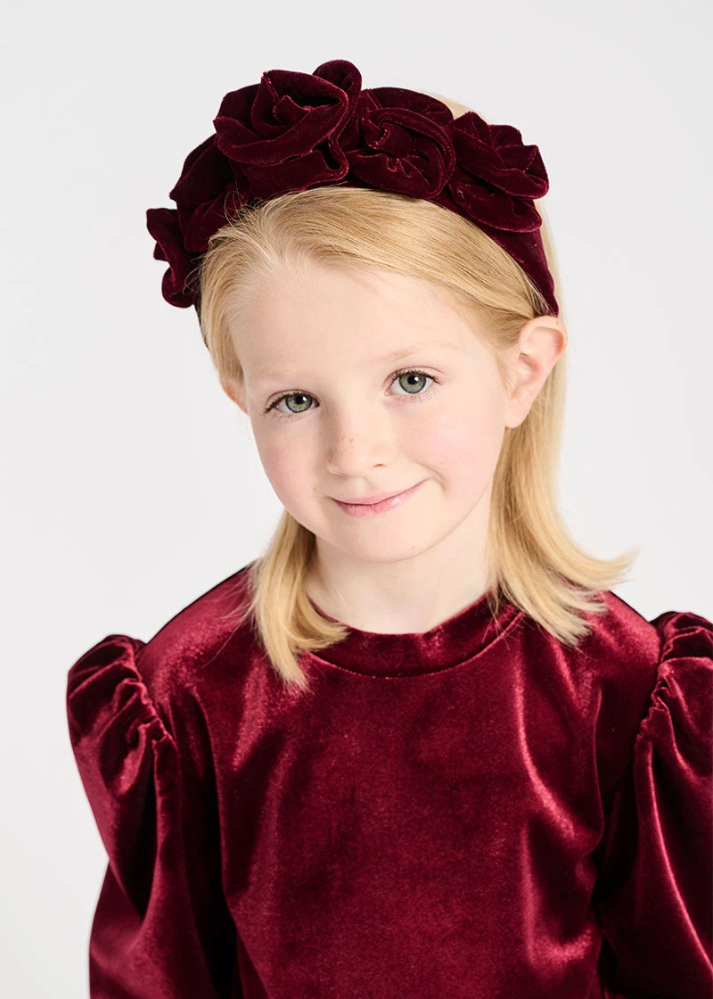 Add a luxury finish to any outfit with our velvet Rosie headband. Three red roses to frame the face of your stylish angel.