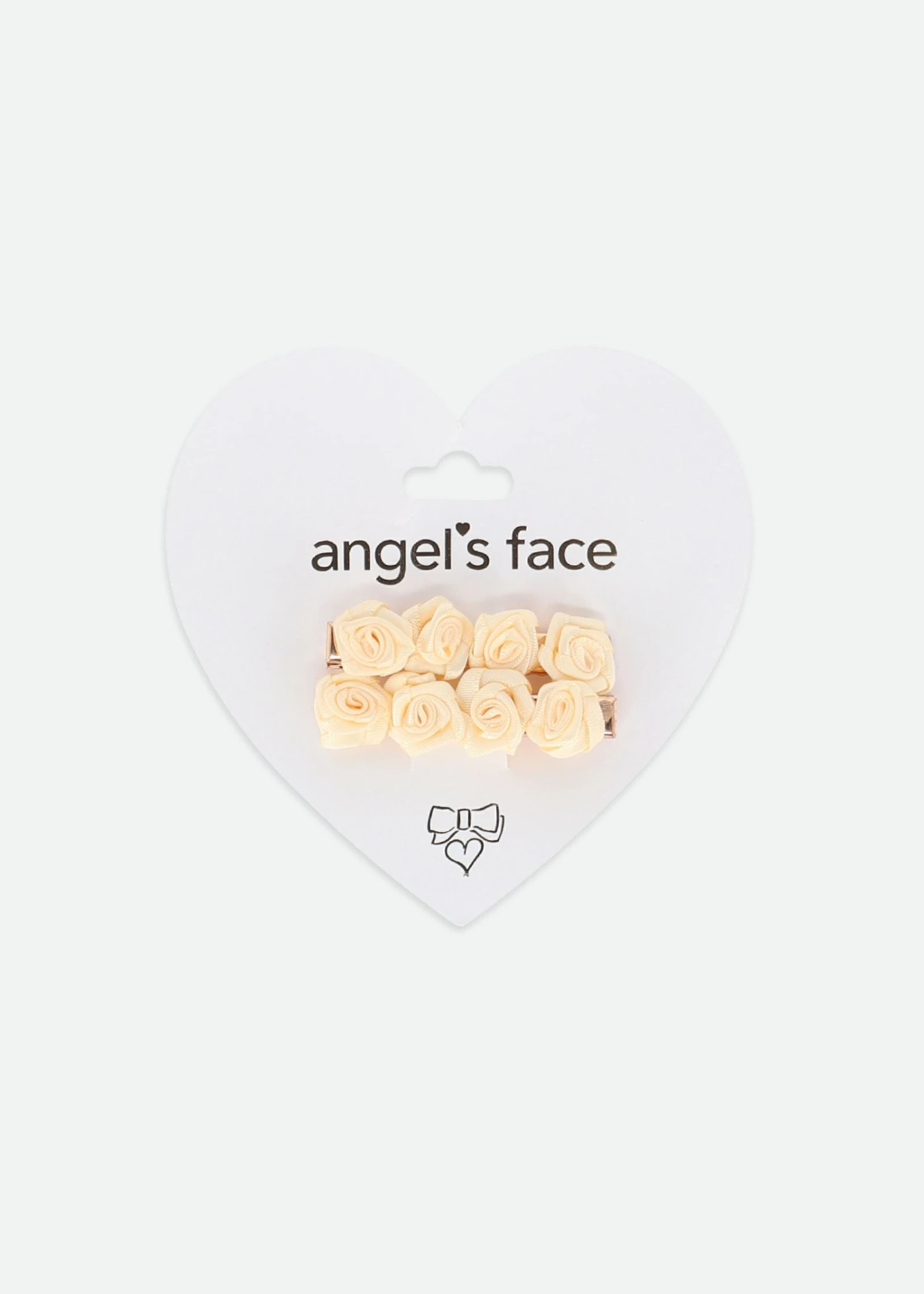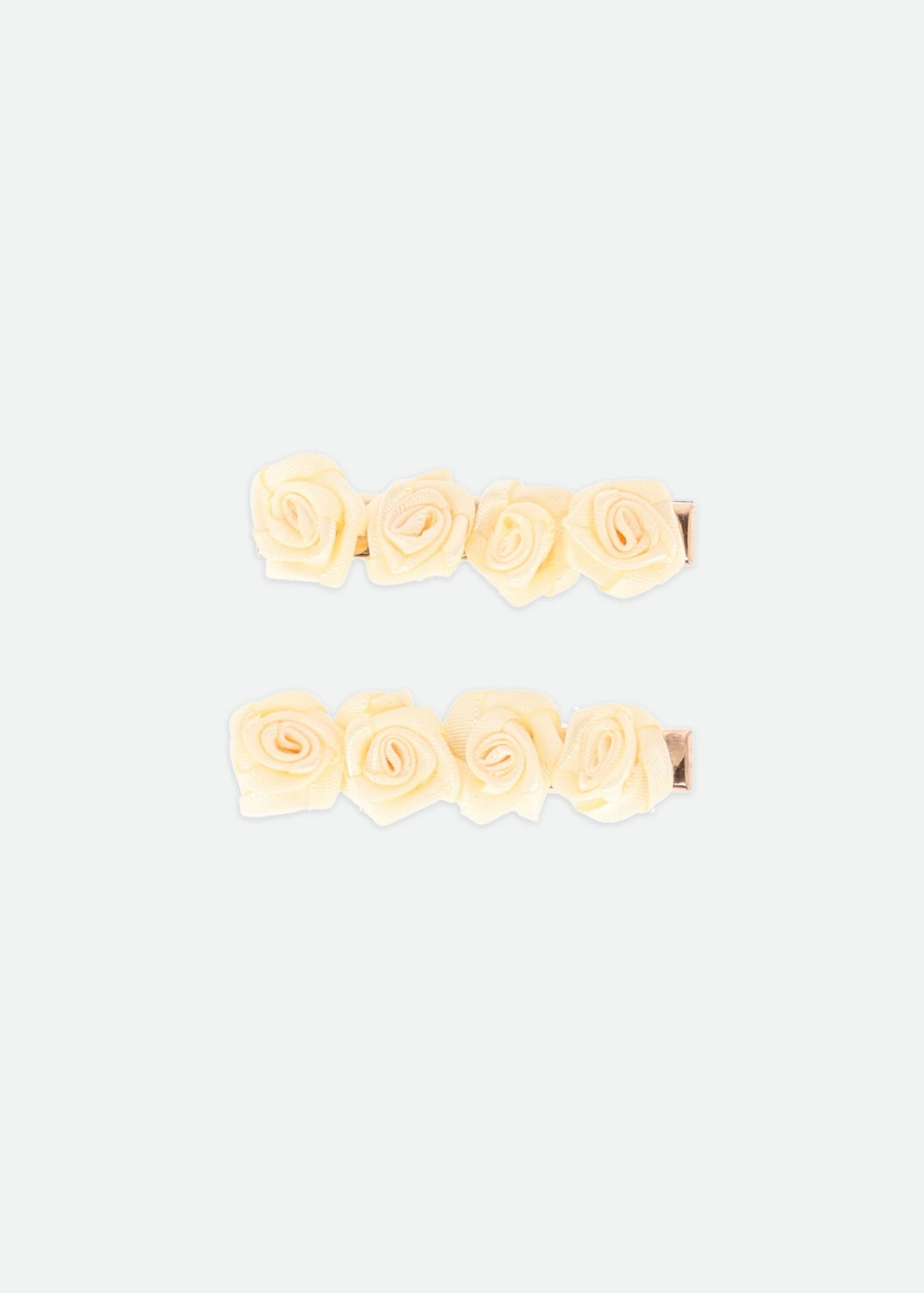 Chic satin hairclips with dainty roses detail in Vanilla. The perfect finishing touch to complete your outfit.