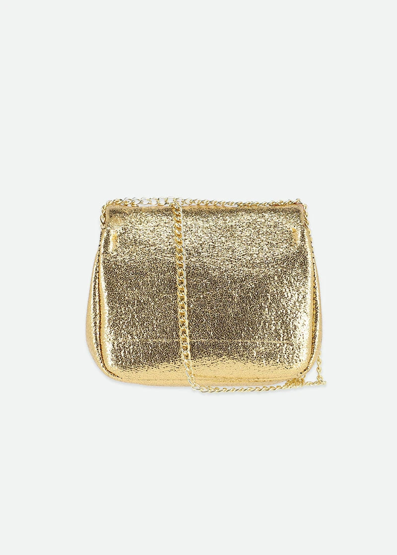 Stylish gold metallic shoulder bag featuring our signature bow and gold heart charm on the front. Bag is fully lined with a handy zip pockets and has an adjustable chain for shoulder or cross body look, perfect finishing accessory.