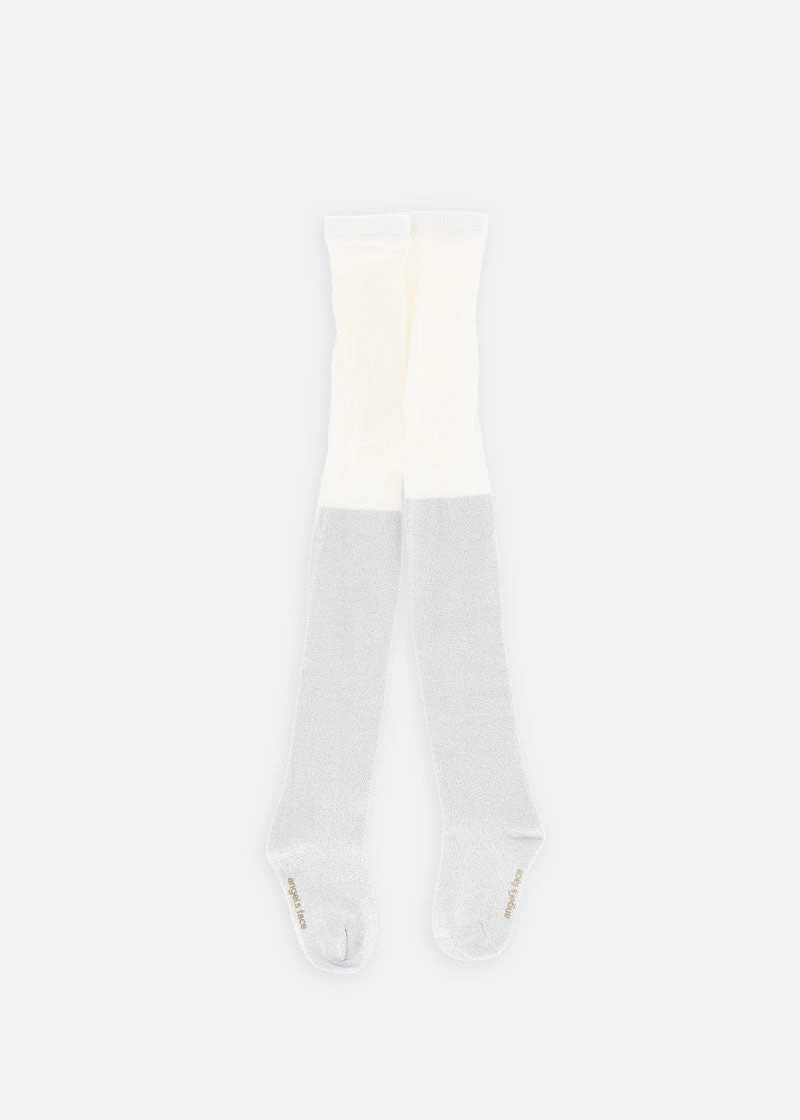 Girls white tights with an element of silver sparkle. These soft and stretchy tights feature an Angel’s Face logo on the sole. Perfect way to complete your outfit.