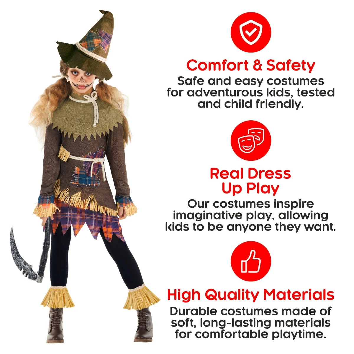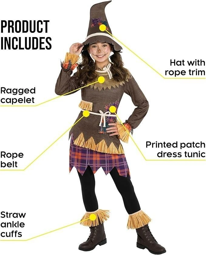 Il spaventoso costume spaventoso per i bambini è perfetto per ogni ragazza che vuole dare un tocco spaventoso al personaggio classico del mago di Oz. Questo costume da scavaloscrew di alta qualità per i bambini contiene tutto ciò che tua figlia ha bisogno per spaventare le persone durante Halloween, tra cui un vestito, un cappello, un cappellino e polsini alla caviglia di paglia. Ordina il tuo oggi.