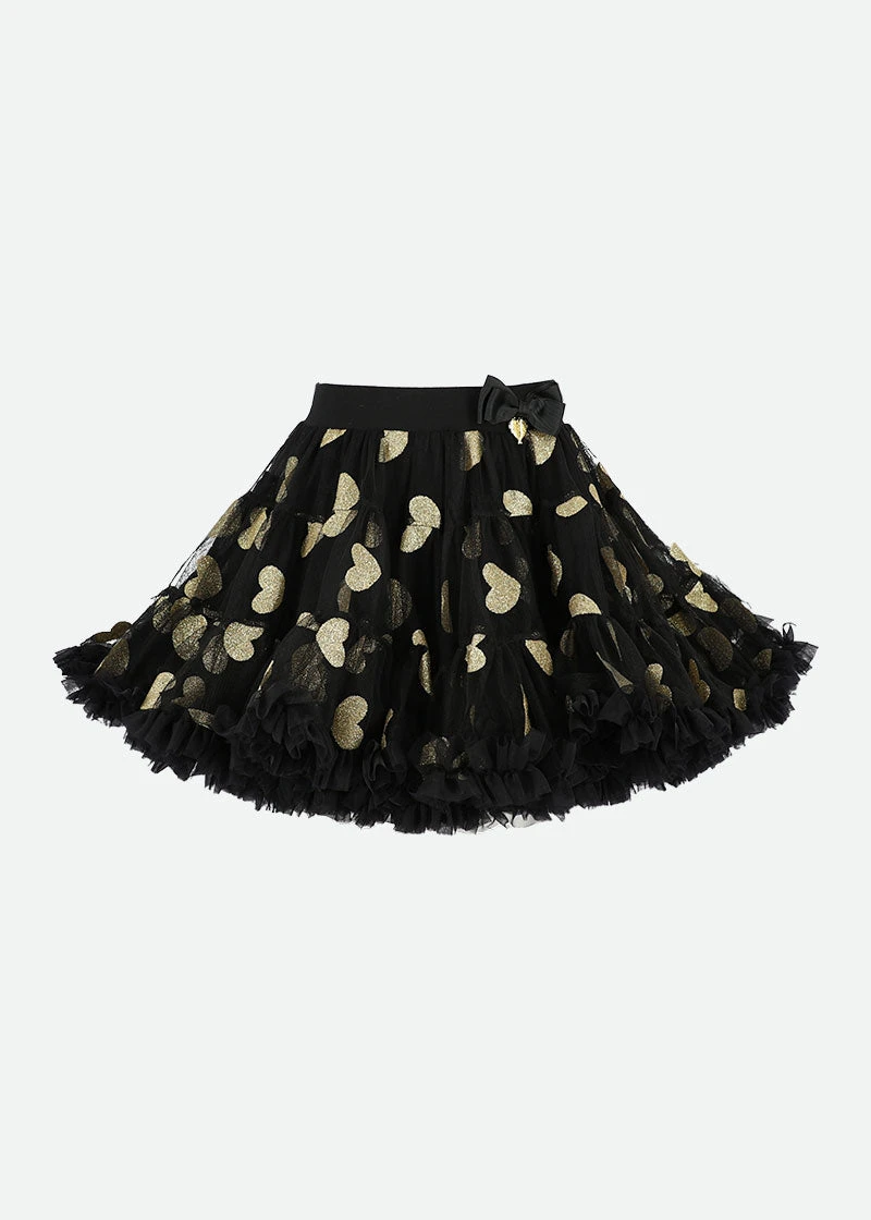 • Iconic layered tulle tutu skirt with gold glitter hearts