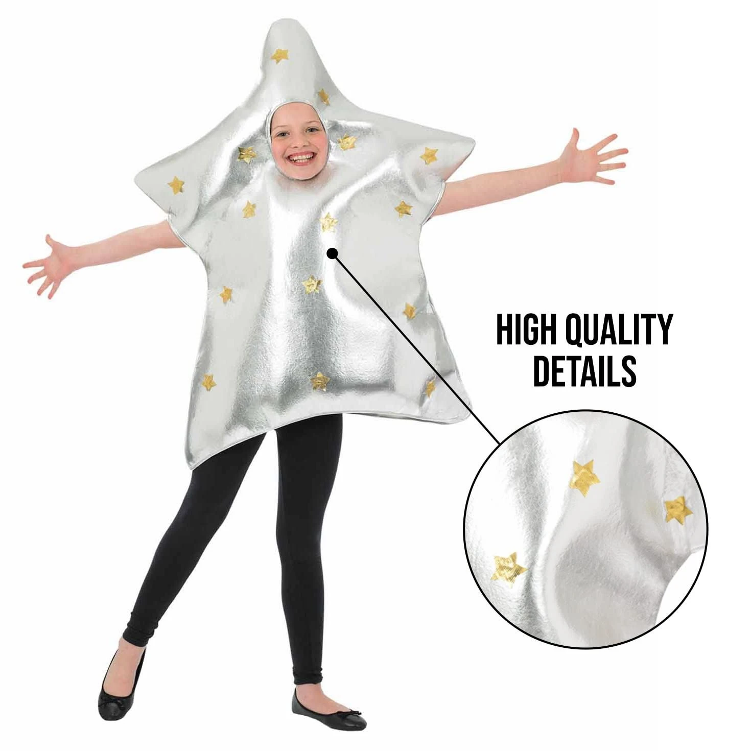 Include: una tabarda a stella argentata, taglia unica con linguette di rilascio in velcro.Questo costume per bambini è disponibile in taglia: Unica. Usare l’immagine di riferimento per la misura delle taglie. Materiali di alta qualità, facile da indossare e resistente.Sicuro per i bambini: rispetta gli Standard di Sicurezza EU e UK ed ha il marchio di sicurezza CE.