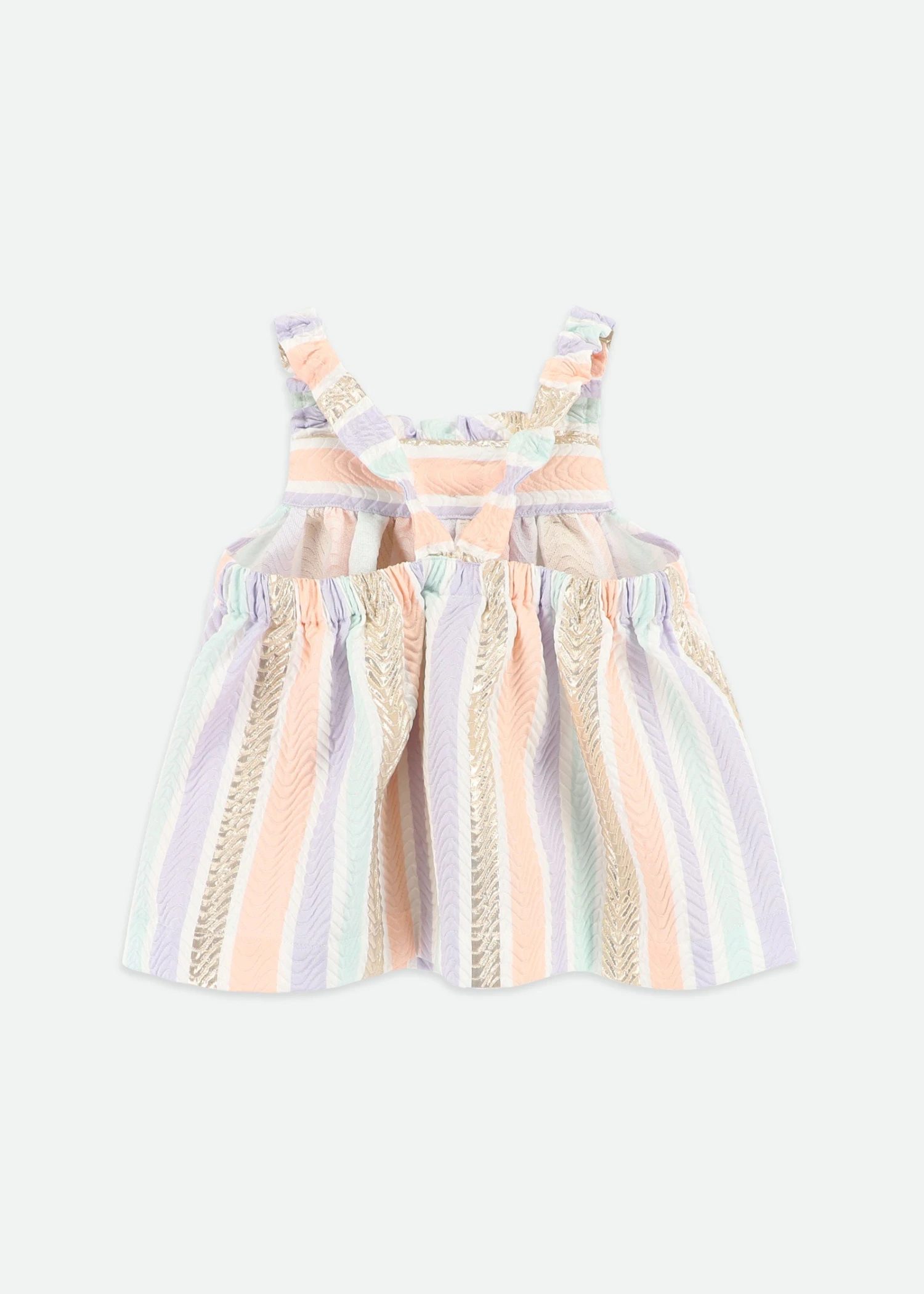 Girls striped summer top with gold details. Made to match perfectly with our Ruthie shorts. The top features an Angel’s Face signature bow and gold heart charm on the chest and two ruffled straps.